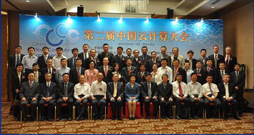 院士倪光南在参加第二届云计算大会时与首个云平台创始人-鸿蒙